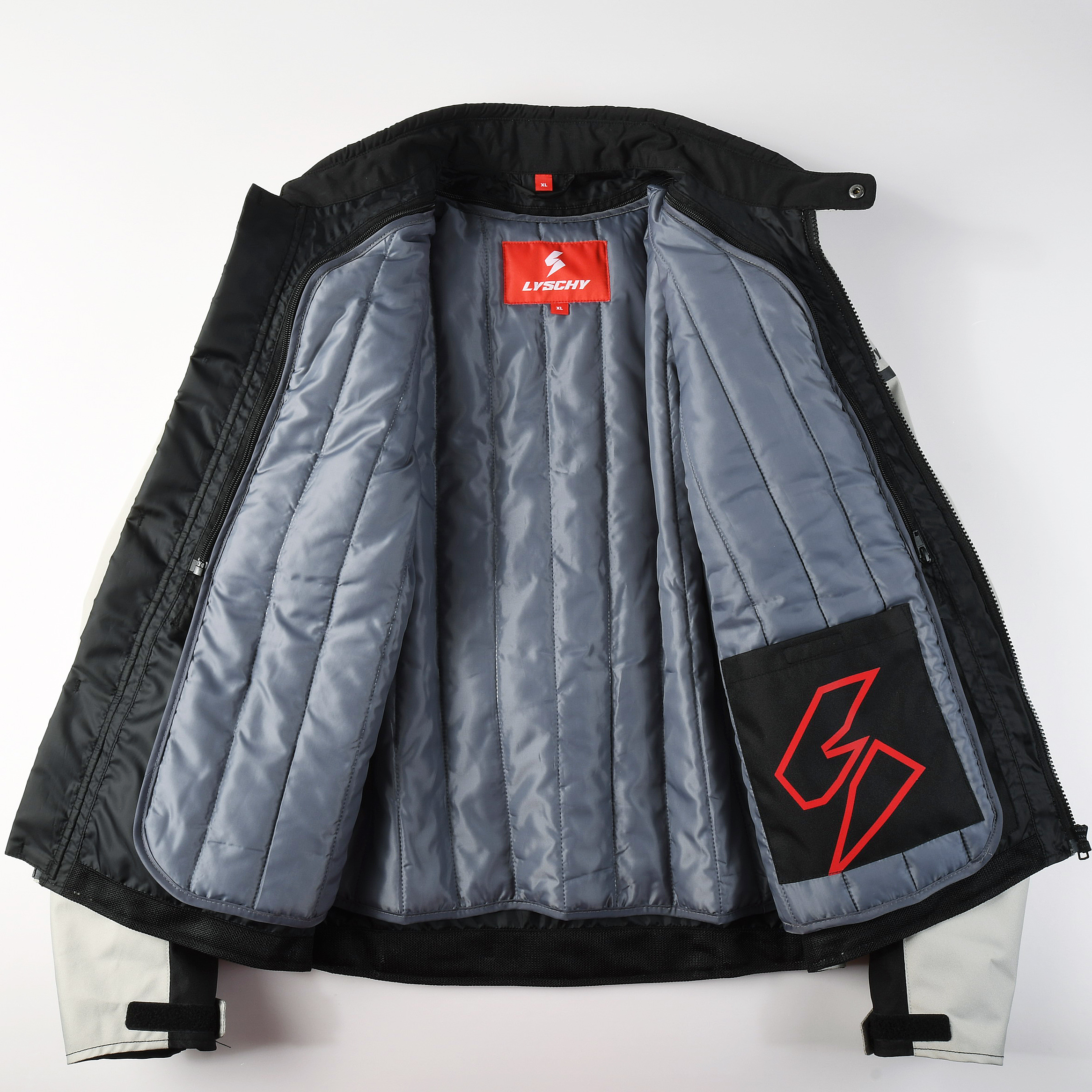 卖点1:高强度防护面料 (特性):600D加密牛津布,表面防泼水,通过国际权威检测,抗撕裂强度远超CE标准,使用通过CE测试的高强度缝纫线。 (优势):耐磨、抗撕裂性能强,安全有保障,附权威检测证书。 好处):骑行更安心,面对摩旅或极端环境也能强力防护。 卖点2:8000mm防水性能 F:固定防水内里,防水指数8000mm,有效防大雨,长时间骑行依然干爽。 B:雨季无忧,骑行体验更舒适。 卖点3:100g婴儿级仿丝保暖棉 F:采用100克高品质仿丝棉,柔软、透气、锁温性能优异。 A:保暖不闷热,穿着轻盈舒适。 B:即使在低温环境,骑行也能保持温暖和灵活。 卖点4:CE护具 + EVA后背防护 F:肩肘配备CE认证护具,后背采用EVA缓冲材质。 A:关键部位防护,骑行安全性提升。 B:保护你的每一次骑行,减少意外伤害风险。 卖点5:360°反光设计 F:衣身环绕式反光条。 A:夜间骑行显眼,安全感加倍。 B:白天有型,夜间更安全。 卖点6:YKK主拉链。